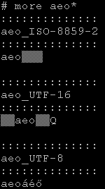 Az angol ABC kiváltságos helyzetben van, a többinek az "egyéb" jelei hányatott sorsúak a számítógépeken. Az angol ABC betűinek 7-bites kódja van, úgy, hogy az ABC-be rendezés egyszerű kódérték szerinti (numerikus) rendezés. Az európaiak betűi az ISO-8859-es kód szabványban a felső byte tartományba kerültek, oda is egymást váltva (az egyes nemzeteké), és nem nemzeti ABC sorrendben. Másoké (kínai, japán, héber, stb.) oda sem férnek be. Ezek tárolására találták ki az Unicode szabványt, aminek a különböző kódolásai egynél több byte-ot használnak a szóbanforgó jelek kódolására. Az alábbi példában a panda-n, ISO-8859-2-es alapbeállítás mellett fájlba tettem az "aeoáéő" jeleket, majd előállítottam a fájl UTF-8 és UTF-16 kódolású megfelelőit.