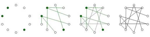 Majd további csomópontokat köt össze véletlenszerűen, de ezek egyi ke sem lehet