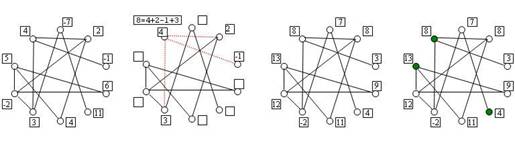 csomópontok értékének az összegét, (6., 7. ábrák). Az így kapott gráf lesz a 25